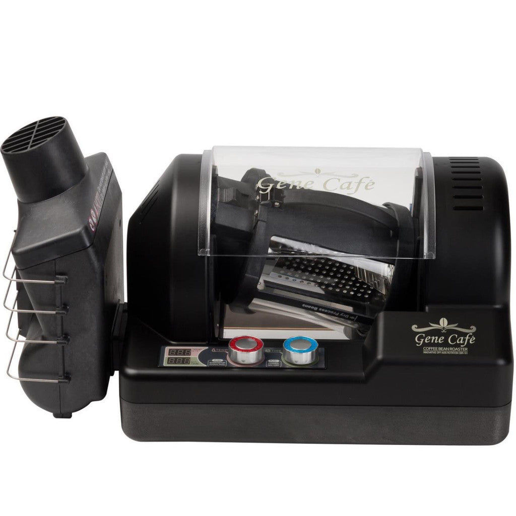The Gene Cafe CBR-101 has established itself as an excellent roaster capable of producing about half a pound of uniformly roasted coffee (250g). It uses a unique vortex twisting, off-axis chamber rotation which assures complete distribution of the green coffee during roasting. This motion is one of the main reasons for the roasted coffee's uniform color.